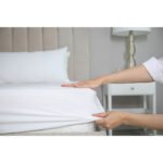 Fabricada en tela 200 hilos percal color blanco, 60% algodón / 40% poliéster, tela grado hotelero, con costura reforzada, ajustable a cajón de hasta 35 cm de altura, elástico duradero.